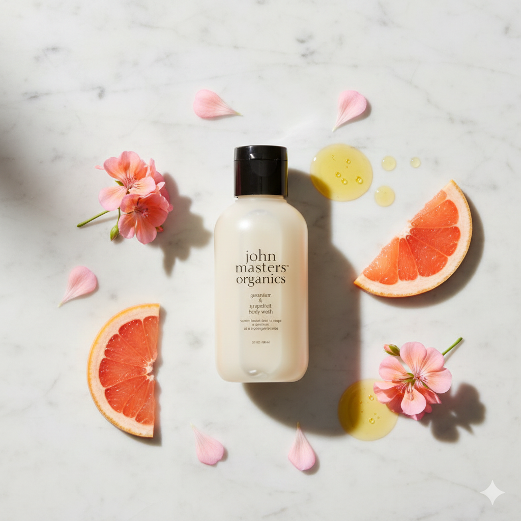 Bagnoschiuma idratante e nutriente al Geranio e Pompelmo.